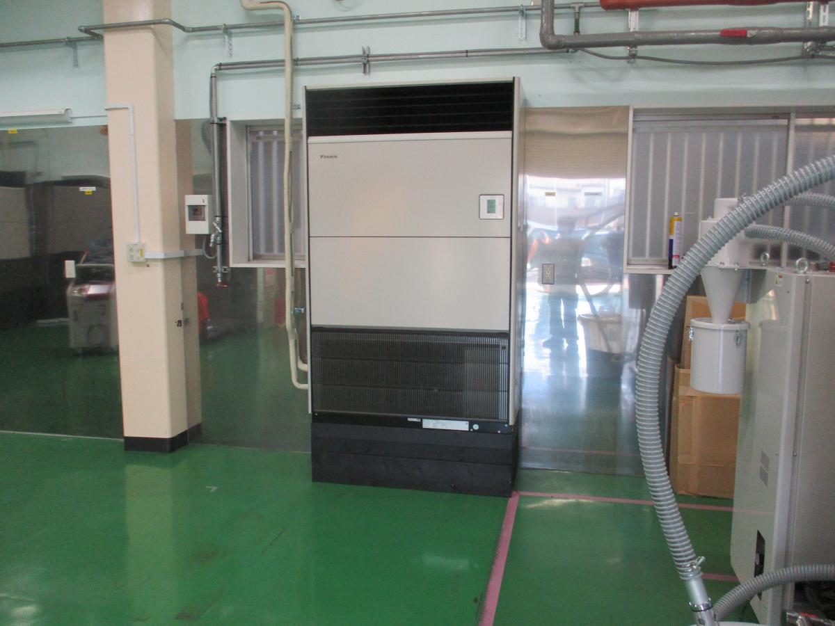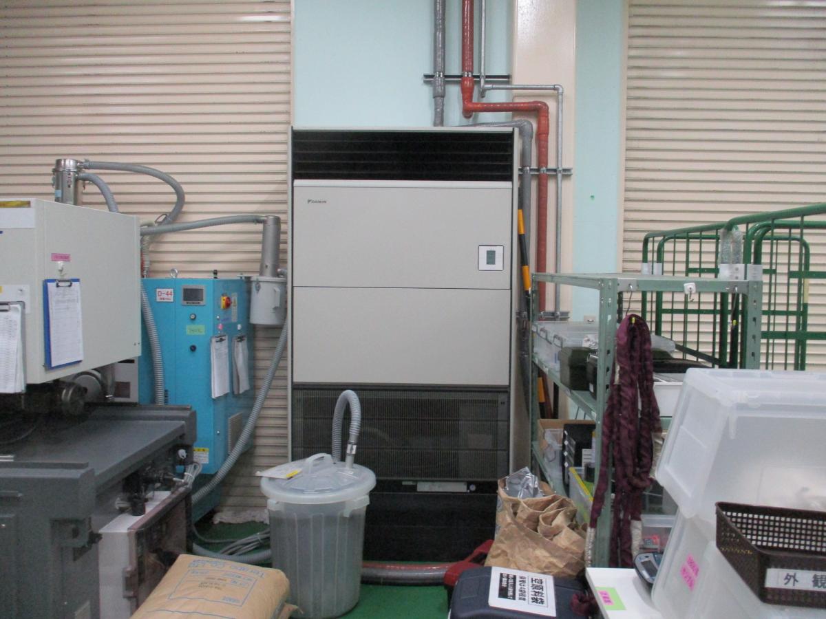 大阪府東大阪市 三優ライト工業株式会社様 第二工場・第三工場床置形業務用エアコン取付
