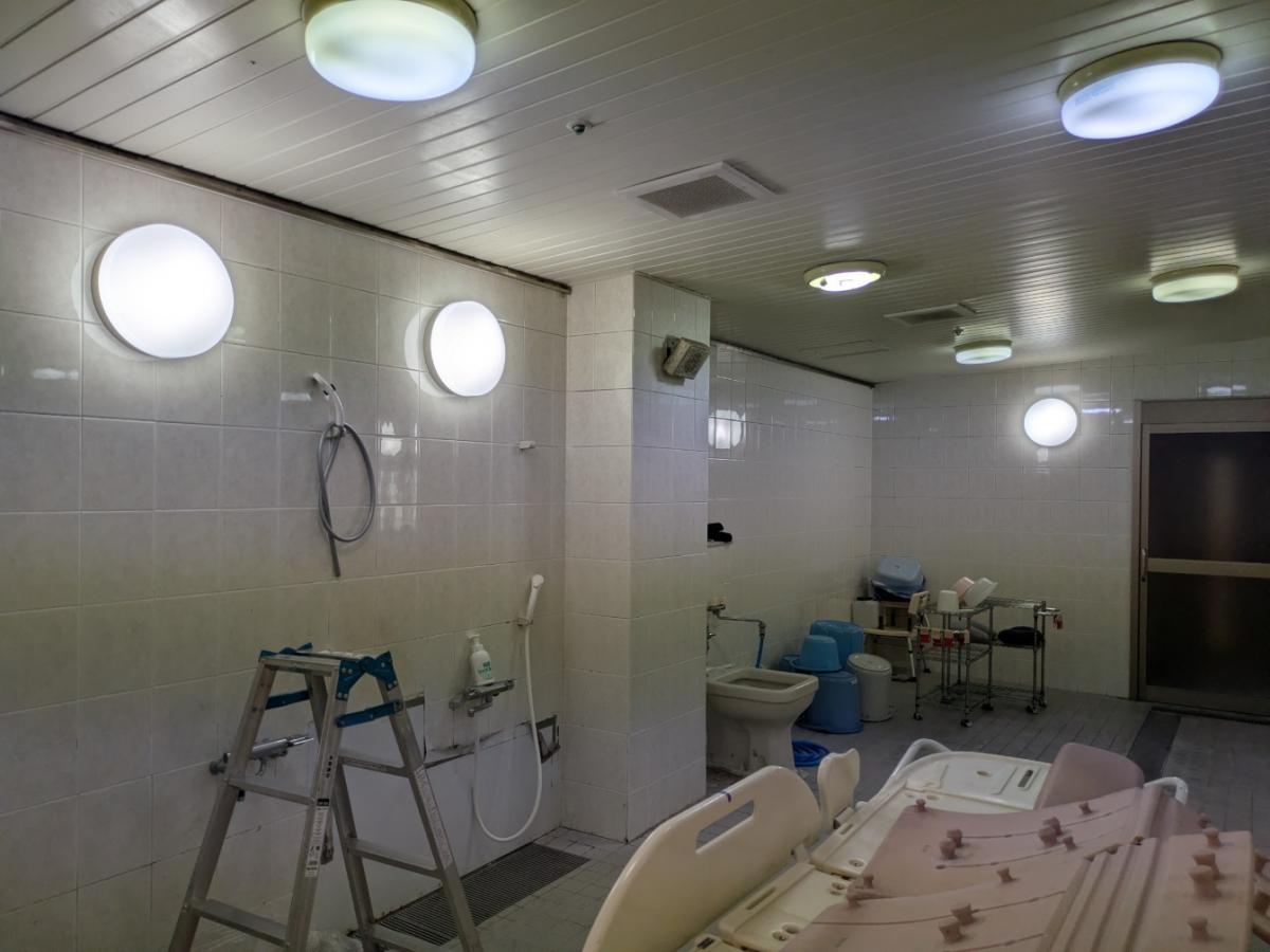 大阪府羽曳野市 特別養護老人ホームアンジュ様 浴室LED照明交換工事完了