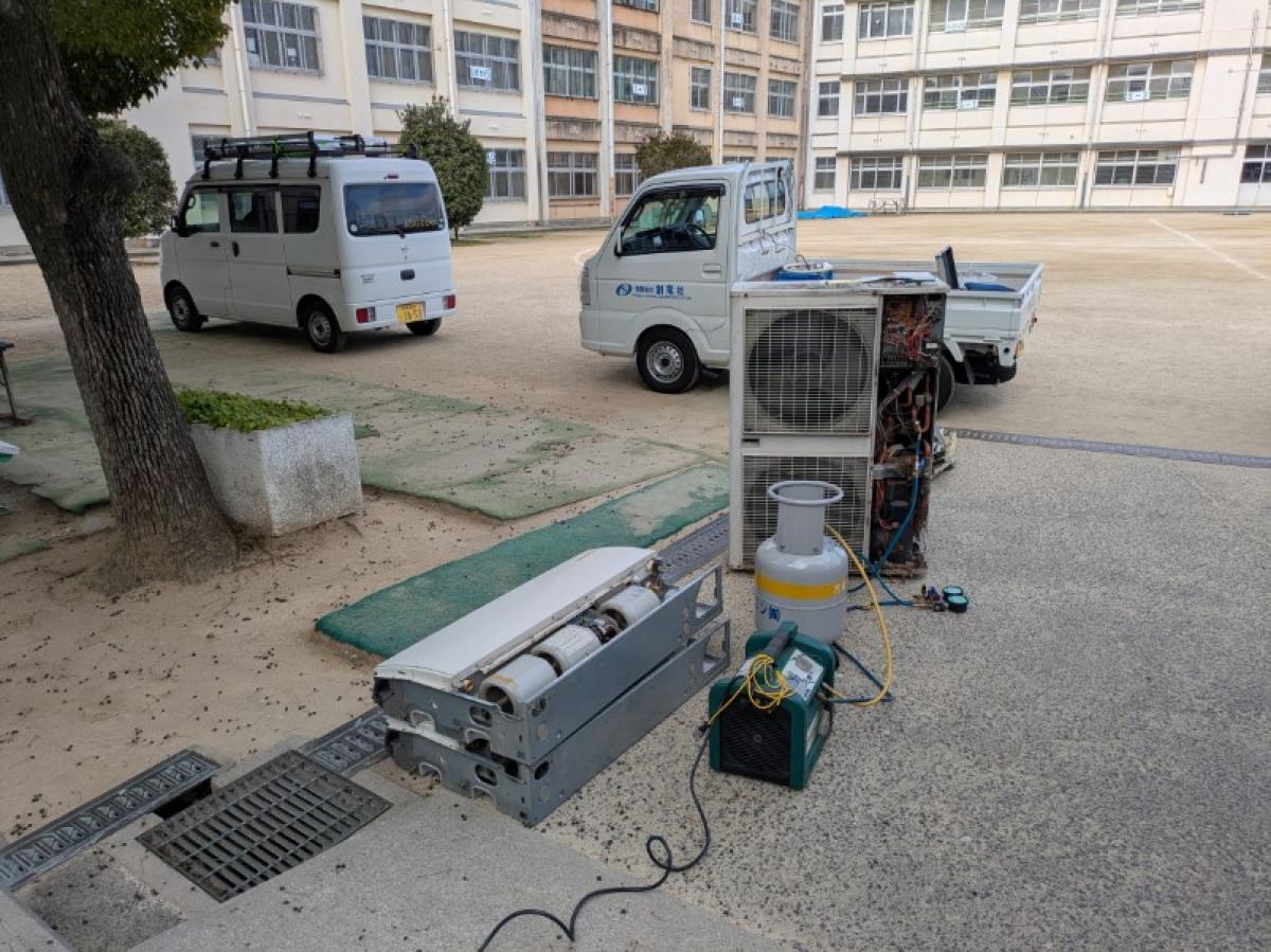 大阪府羽曳野市 某小学校様コンピューター室天吊形パッケージエアコン取替工事